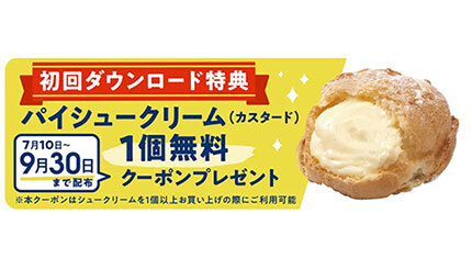 初回ダウンロード特典は、1人1回限り。モバイルアプリを除く、ほかのサービスやクーポンとの併用は不可となっている。シュークリーム1個以上を買った際に利用が可能だ。