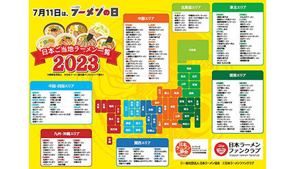日本ラーメン協会は「ラーメンの日」である7月11日(本日)、「日本ご当地ラーメン一覧2023」を公開した。全国から180種類が掲載されている。