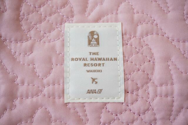 中央のタグには「THE ROYAL HAWAIIAN RESORT WAIKIKI」の文字とロゴマーク、「ANA」の文字と飛行機が描かれています。