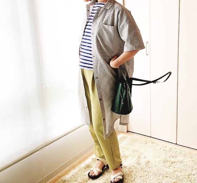 筆者は涼しげで夏らしい印象のオフホワイト×ブルー(ボーダー)を選びました。マリンテイストで、海に遊びに行きたくなる爽やかさです♪