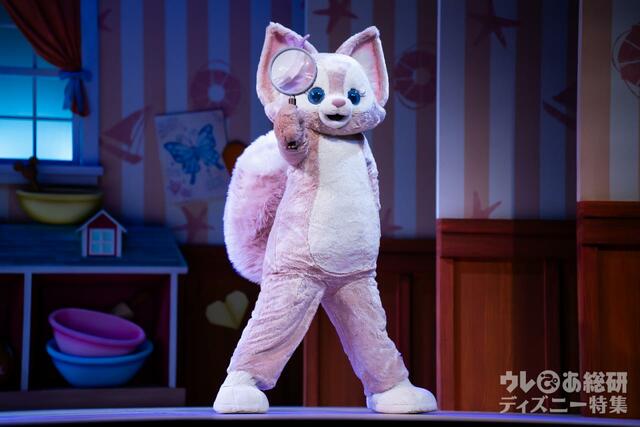 探偵っぽい音楽とともに、虫メガネを持ったリーナベルが登場、大きなしっぽは圧巻です! (1度でいいからさわってみた~い。)