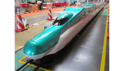 ミニ新幹線と一緒に駅長の制服を着て記念撮影も