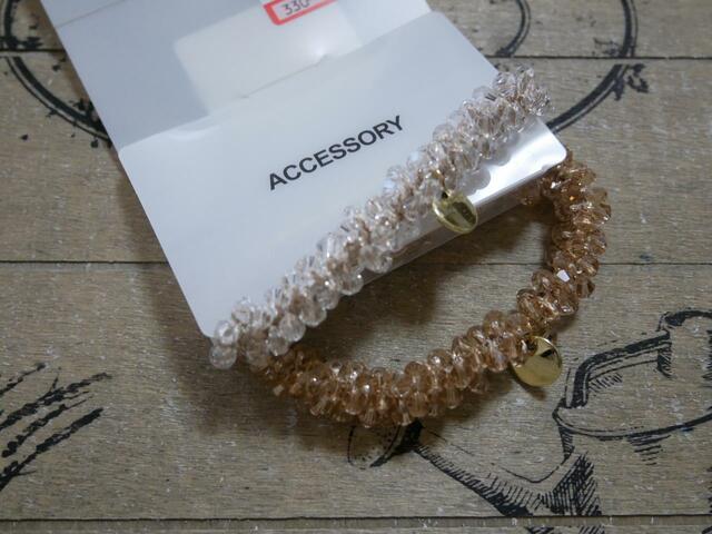 ガラスビーズを使ったヘアゴムが2本セットになっていて、こちらのセット“中白”は、ベージュとピンクベージュの2カラー。