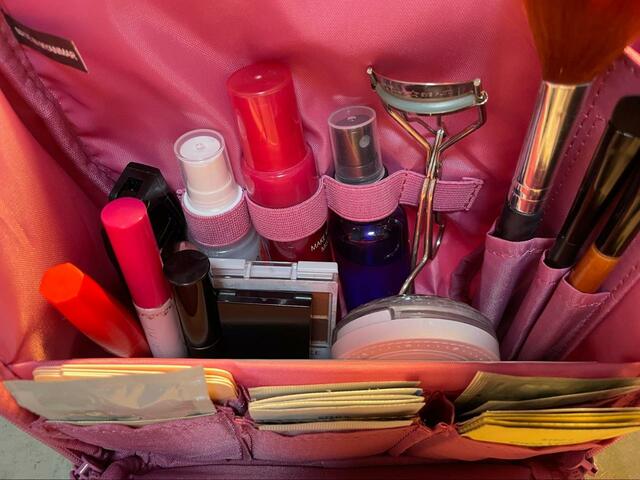 ポーチの部分にはマスカラやアイシャドウ、アイブロウなどメイク道具一式が入りました!