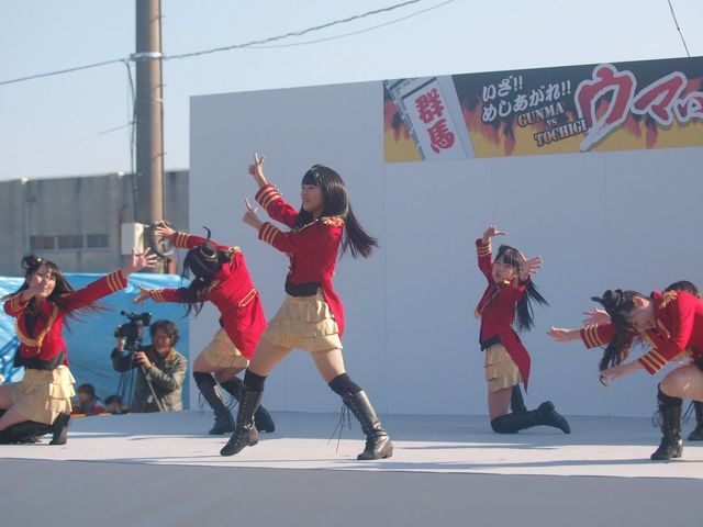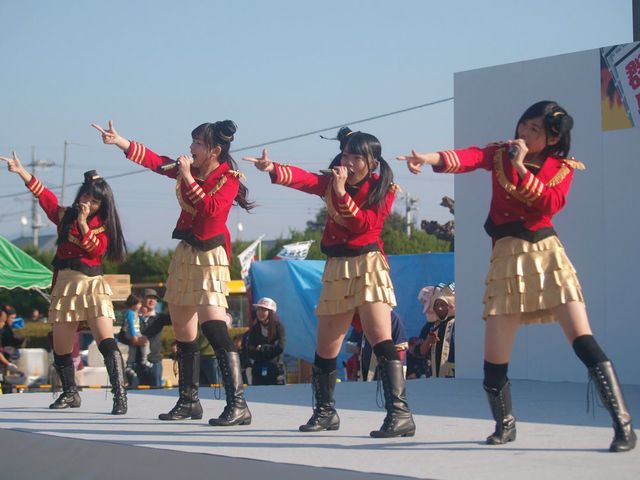 昼過ぎになり、群馬県桐生市は快晴に恵まれております。秋晴れの中、やってきましたAKAGIDAN!さっきまで楽しくインタビューに答えてくれていた彼女たち、やっぱり楽しくステージに立っています。