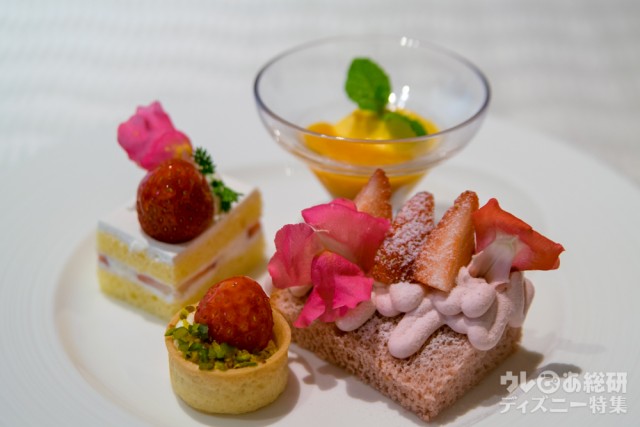 花びらで飾られ、春らしい彩りたっぷりのデザートたちです。