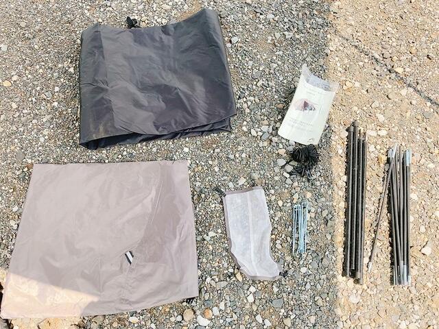 テント本体に部品、説明書等が入っています。