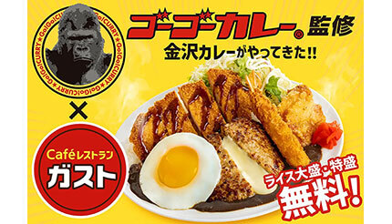 ガストでは、「ゴーゴーカレー」監修の「ゴーゴーガストカレー」の販売を7月20日に開始した。ライスの大盛りや特盛が無料。金沢カレーにガストの人気メニューを大胆トッピングした“ガスト本気盛り”も用意している。