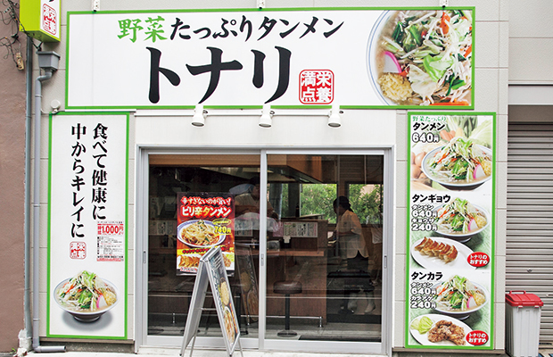 高田馬場の神田川沿いにある、行列店。大量のガラから取った濃厚で力強いスープに、ツルツルとした喉越しも抜群な自家製麺の「つけめん」が大好評。麺の量は350gもあり、ボリューム満点。