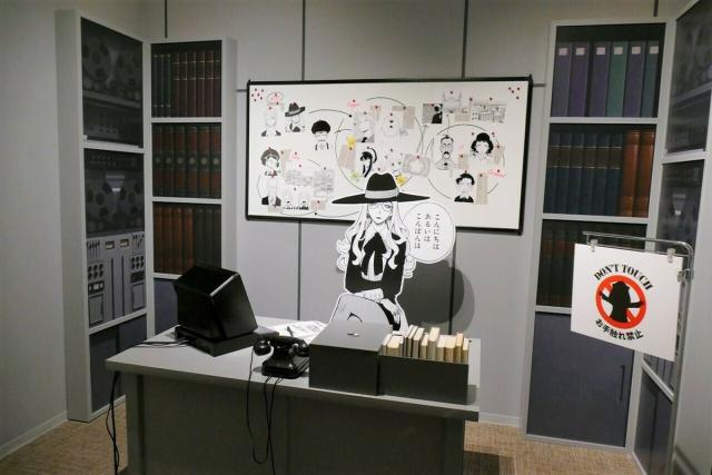 「フォージャー家」の展示では、同展のために遠藤氏が新たに描きおろしたキャラクターイラストの他、額装イラストや各種パネルからロイド、アーニャ、ヨル、ボンドの詳細情報を調査することができる。