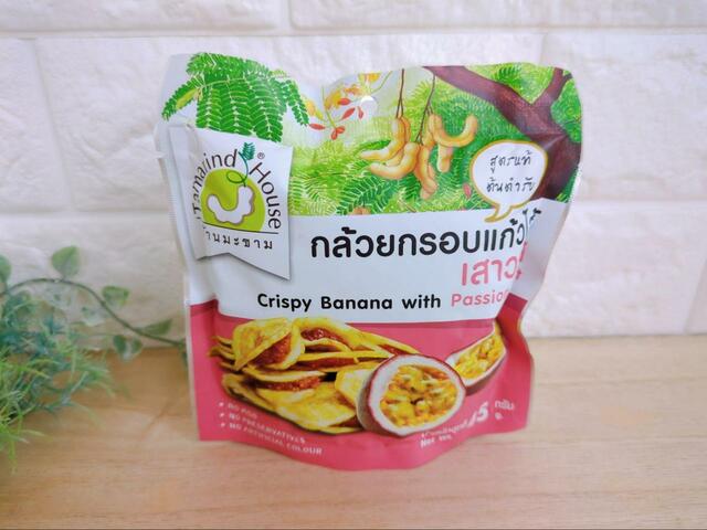 「タマリンドハウス バナナチップスサンド パッションフルーツ」は、バナナチップスで甘酸っぱいパッションフルーツ入りのタマリンドジャムをサンドしたタイで人気のおやつです。