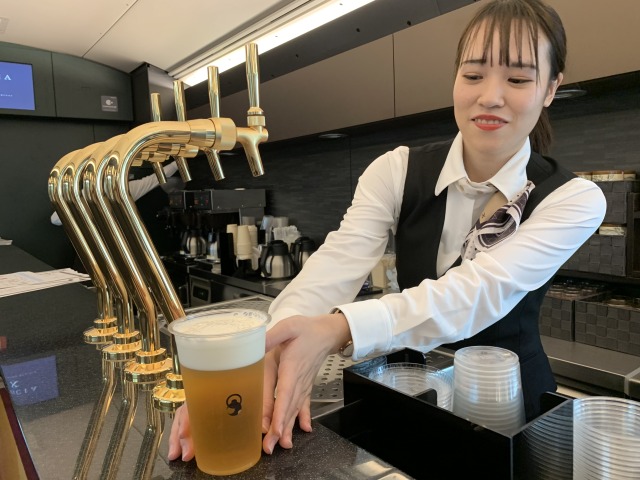 ホテルのラウンジのように、足元もゆったり。目的地までの移動中とは思えないほど贅沢な空間の中で非日常感に浸れます。