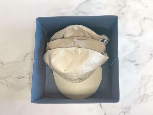 キャップは型崩れが心配ですが、こういったボックスに入れておくと綺麗に保管することができます。