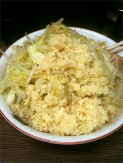 まるでニンニクが粉雪のように、ラーメン上にしんしんと降り積もっている。