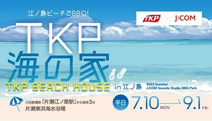ティーケーピーは7月10日~9月1日の平日限定で、片瀬東浜海水浴場(神奈川県藤沢市)にある、JCOMが運営する海の家の一部を「TKP BEACH HOUSE」に転換し、ワーケーションや企業の懇親会・交流会の会場として利用可能な、新たなスタイルの「海の家」として販売している。