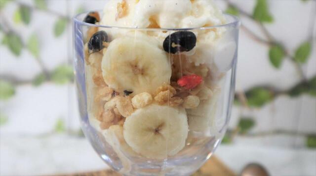 こちらも、一口大にカットしたバナナ、グラノーラ、アイスをグラスに入れるだけで完成。