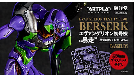 海洋堂は11月に、テレビアニメ「新世紀エヴァンゲリオン」の放送当時にガレージキットとして発売された、造形師の松村しのぶさん制作によるエヴァンゲリオン初号機を、プラスチックモデル「ARTPLA SCULPTURE WORKS エヴァンゲリオン初号機“暴走”」として発売する。価格は7150円で、7月25日から予約を受け付けている。