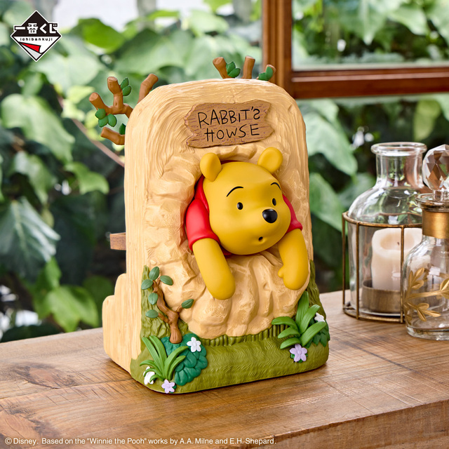 『プーさんとはちみつ』から、プーさんがはちみつを食べすぎてラビットの家に詰まったシーンを忠実に再現しています。