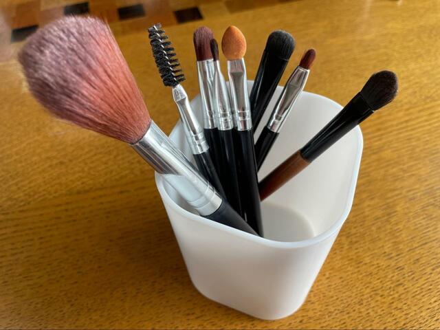 メイクブラシはペン立てに収納