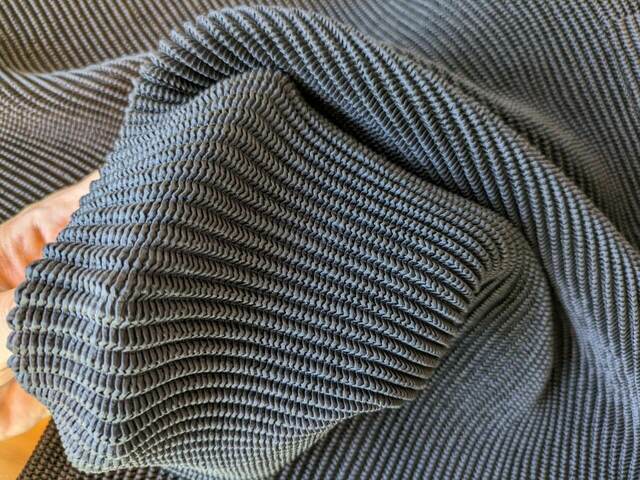 シャトルプリーツ素材は、伸縮性抜群でシワになりにくい素材です。