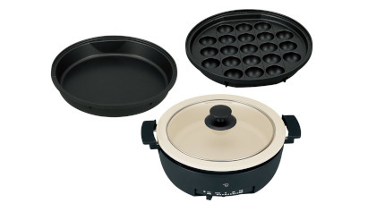 新製品は、「土鍋風なべ」「区切り線つきたこ焼きプレート」「遠赤すき焼きなべ」の3種類のプレートを用意しており、なべ料理はもちろん、おでん・たこ焼き・すき焼き・お好み焼き・焼きそば・焼肉など、1台で様々な料理が楽しめる。