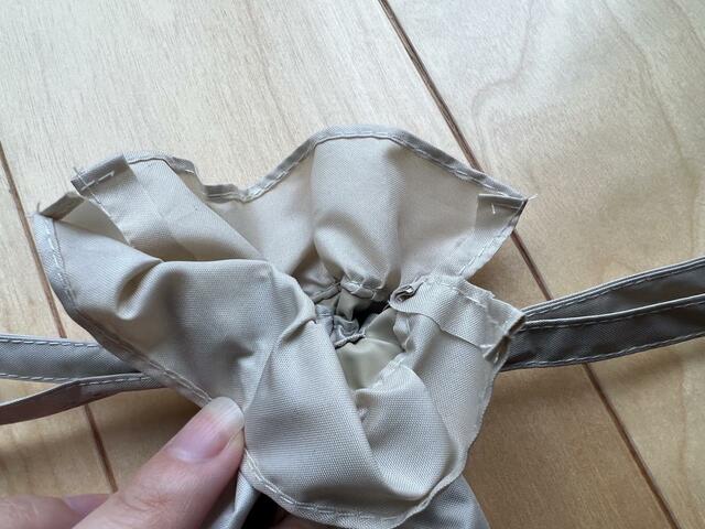 日傘の収納袋は、巾着スタイルで上部に2〜3cm程度切り込みが入っているため、日傘の収納も非常に収納しやすくなっています。