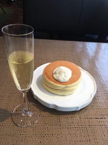 これまでスパークリングワインもホットケーキも何度も賞味してきた。もちろん別々だが。恐る恐るスパークリングワインを飲んでみた。ところが、これが意外や意外、ミスマッチでもなんでもなかった。