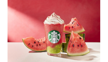 スターバックス コーヒー ジャパンは、初めてのスイカフレーバーとなる「GABURI スイカ フラペチーノ」を8月9~31日の期間限定で、全国のスターバックス(一部除く)で販売する。