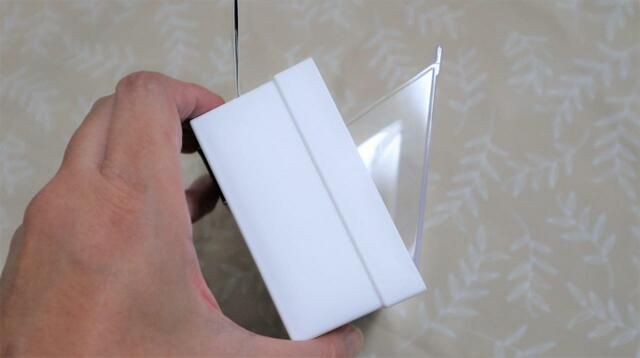 外箱にカバーを兼ねたクリアなケースが入っており、指でくいっと手前方向に引き出せる仕様です。