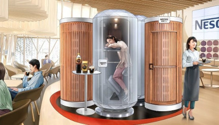 ネスレ日本は、「ネスカフェ 睡眠カフェ in 原宿」で日中の短い仮眠(昼寝)の前にコーヒーを飲んで気軽に立って仮眠をとるスタイルが体験できる日本初のサービス「ネスカフェ 睡眠カフェ×ジラフナップ“立ち寝コーヒーナップ”体験席」を8月22日から期間限定で設置する。設置期間は9月17日まで。“立ち寝”スタイルを提案する仮眠用ボックス「giraffenap(ジラフナップ)」を扱う広葉樹合板とコラボした。