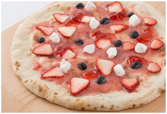 ・苺のデザートピッツア、苺と抹茶のカスタードピッツア、苺とマシュマロのピッツア