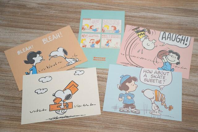 スヌーピーとルーシーの1コマがラベルにプリントされています。