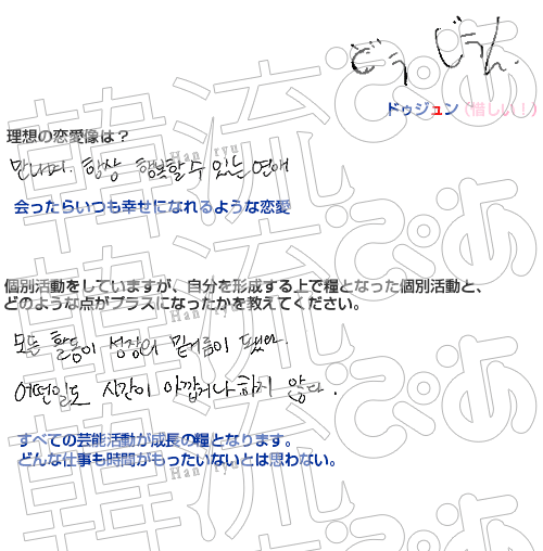雑誌「韓流ぴあ 12/31号」P.51掲載のパーソナルQ&Aの回答用紙の未掲載の部分をここだけで公開!