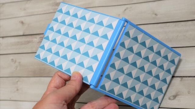 会社のロゴが入っていたので「あまり外に持ち出せないな…」というアイテムだったのですが、同系色の幾何学柄リメイクシートで、他にはない一品になりました。