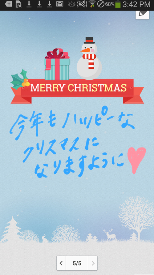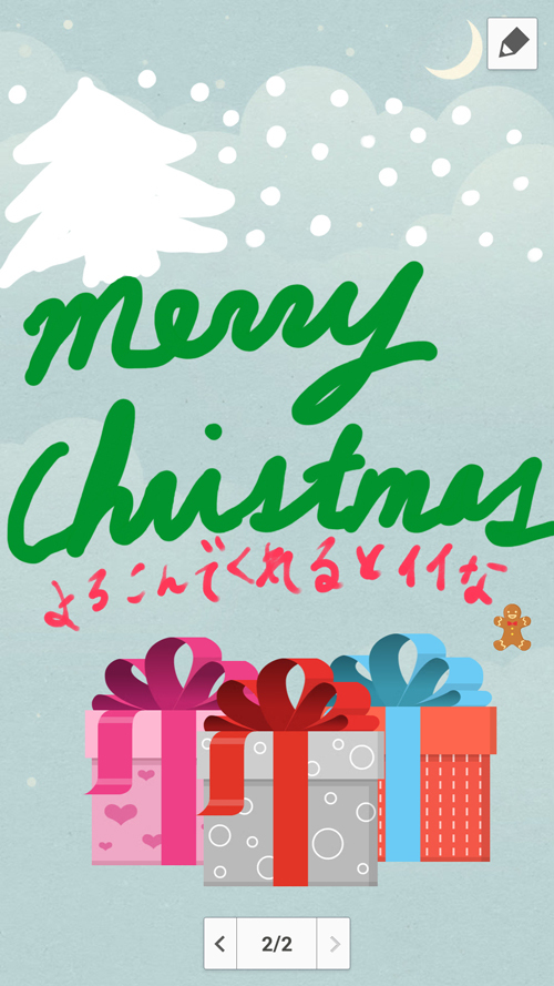太いペンを使って文字を書いたり、白いペンを使ってクリスマスツリーのシルエットを描くなど、ペンの質感を活かした表現が思いっきり楽しんでみました。もとの背景に装飾があるので、シンプルな加工でも十分オシャレになるのが嬉しいですね。