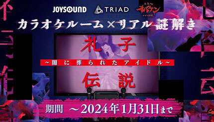 「カラオケルーム×リアル謎解き 礼子伝説 ~闇に葬られたアイドル~」は、カラオケルームで起きた怪事件の謎を実際の部屋のモニタで怪映像を見ながら、スマートフォン向けの謎解きアプリ「TRIAD謎解き」を使って解き明かしていく体験型コンテンツ。カラオケルームならではのギミックや演出、迫力の音と映像で織りなす新感覚のリアル謎解きホラーゲームとなっている。