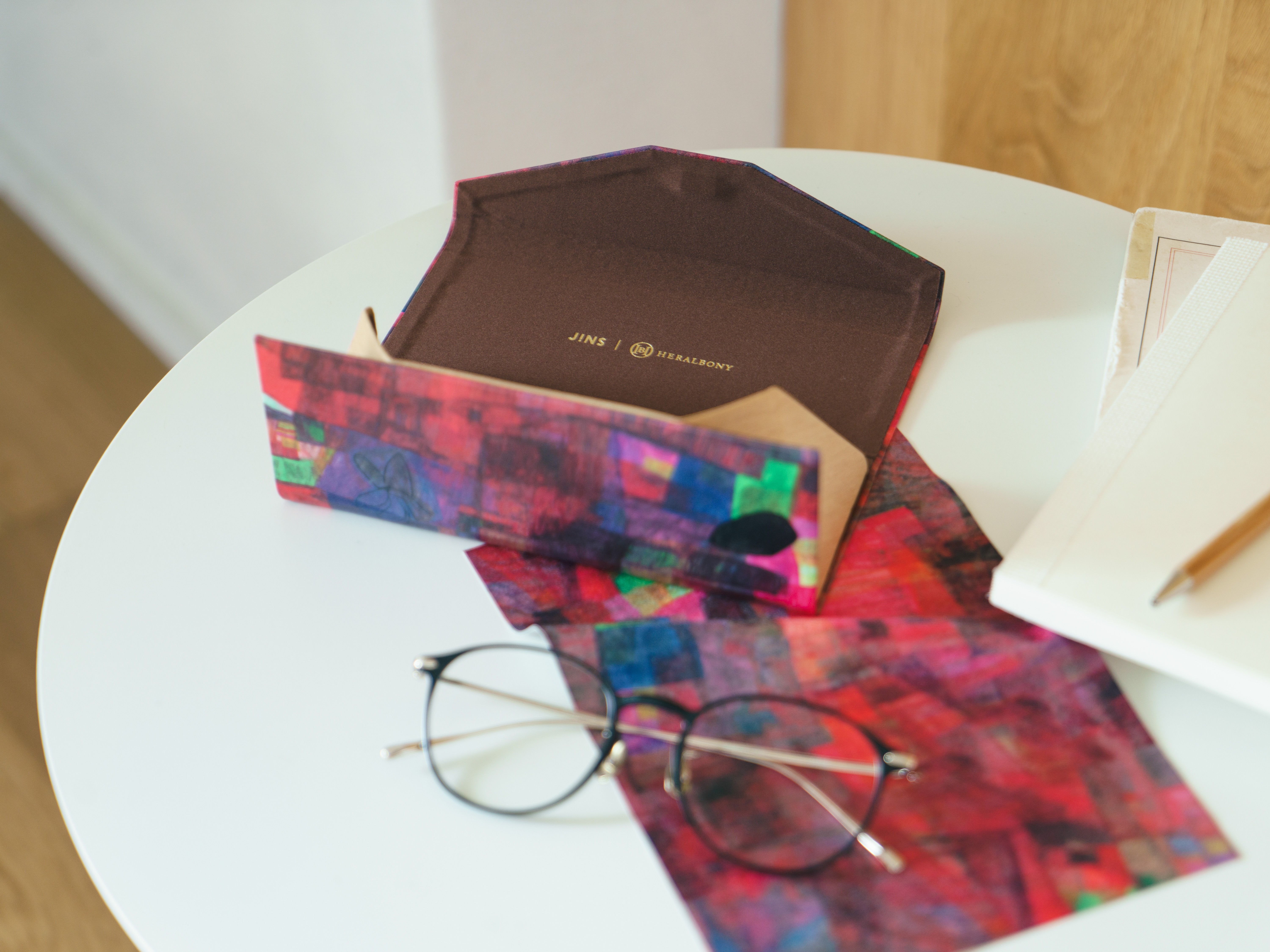 高級感のある素材で、内側にはポップなアート作品がプリントされています。