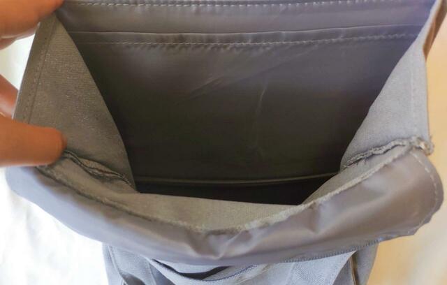 反対側の仕切りスペースには、仕切り部分の裏面に薄めのポケットつき。