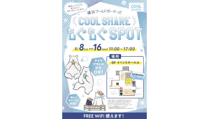 横浜インポートマートは8月8~16日の期間、同社の運営する「横浜ワールドポーターズ」(神奈川県横浜市)において、6階のイベントホールAを涼しいクールシェアスポット・飲食スペースとして特別無料開放する。