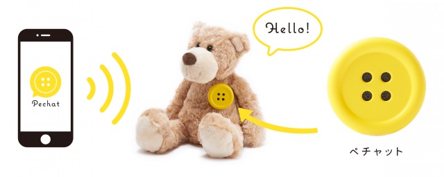 ペチャットは、ぬいぐるみにつけるボタン型スピーカーです。専用アプリを操作して文字を入力すると、ペチャットが可愛く読み上げてくれます。吹き込んだセリフも可愛い声に変換してくれます。