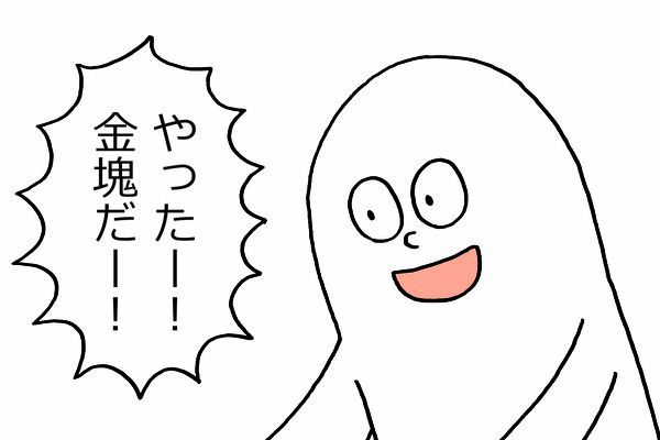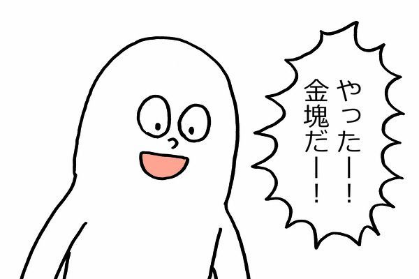 しかし、そこはさすがの記憶力ゼロ。金塊を返している途中で金塊を返していることを忘れてしまい、金塊を返すことを忘れたせいで金塊を得たので、金塊を得てさらによろこぶことが可能になりました。