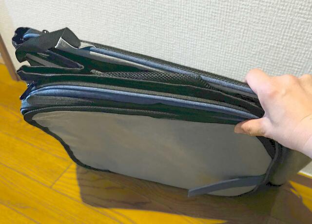 拡張部分を広げるとかなり大きくなる印象ですが、折りたたみ式なので収納時は薄くなります。
