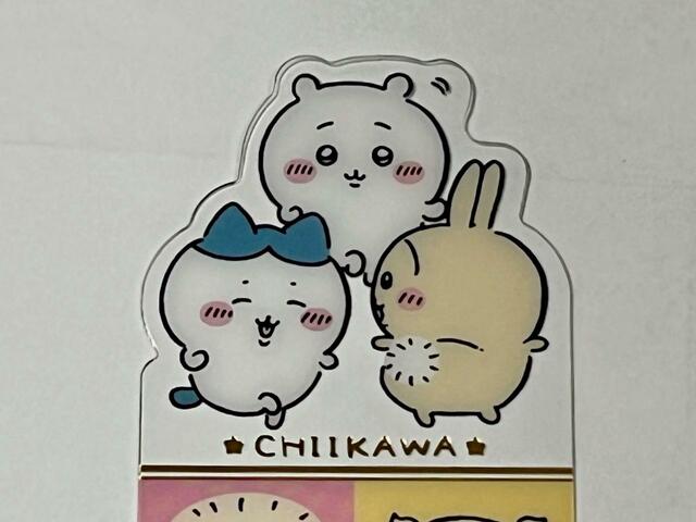 しおりの上部のちいかわ、ハチワレ、うさぎの仲良しトリオが楽しそうに踊っている図も尊い…!