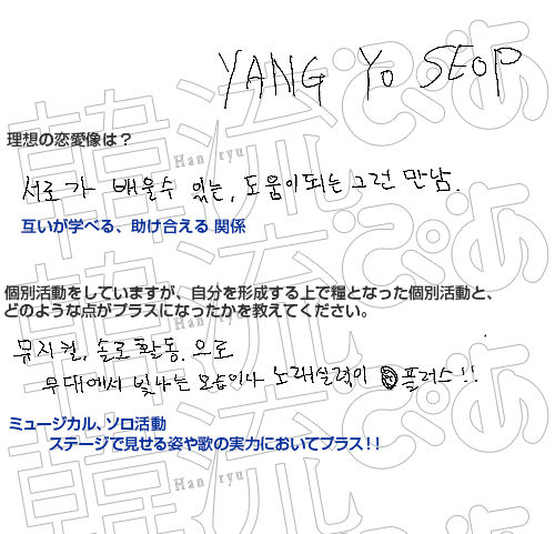雑誌「韓流ぴあ 12/31号」P.51掲載のパーソナルQ&Aの回答用紙の未掲載の部分をここだけで公開!