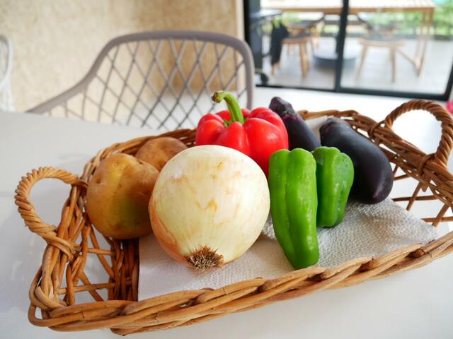 かごいっぱいの野菜を使って、野菜ピザを作ってみてはいかがでしょう?