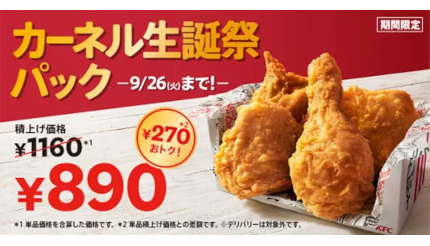 日本ケンタッキー・フライド・チキン(KFC)は8月23日~9月26日の期間、全国のKFC店舗(一部を除く)で「カーネル生誕祭パック」を販売する。
