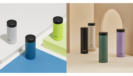 そのほか、独自のスピニング加工によって内筒を極限まで薄く加工することで、より持ち運びしやすい軽量化を実現するとともに、飲み口上部をカールさせてマグカップのような口あたりを再現している。また、ステンレス真空2重構造により高い保冷・保温力を実現し、飲みごろの温度を6時間以上キープする。