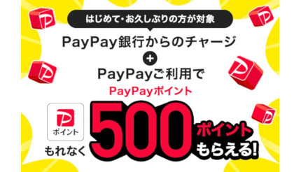 PayPay銀行口座からPayPayへのはじめて・久しぶりのチャージで500ポイントがもらえる