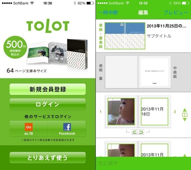 TOLOTはiPhone/iPadアプリ、Androidアプリもあります。だからパソコンがなくてもOK! スマホで撮りためた写真をそのままアプリを使ってレイアウト、発注までできちゃうんです。