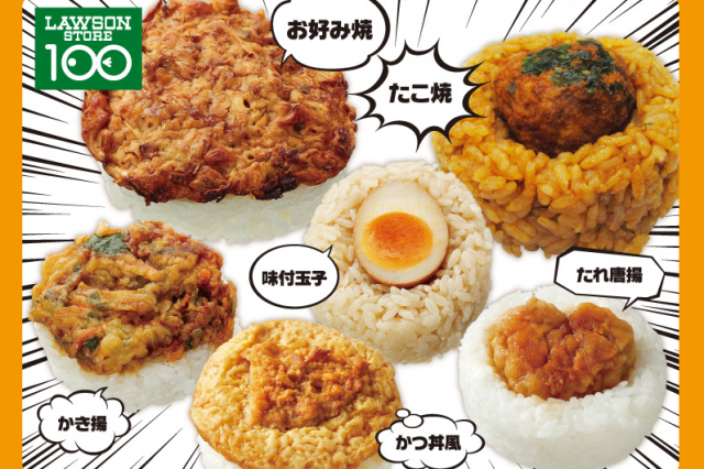 「ローソンストア100」より、ごはんの上にボリューム満点の具材をのせた「具のせおにぎり」シリーズから、「たこ焼おにぎり」「お好み焼おにぎり」の2品が3月28日(水)より、翌週の4月4日(水)から「たれ唐揚おにぎり」「かつ丼風おにぎり」の2品が新発売となります!